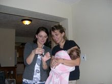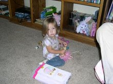 Megan, Brooks, and children came over before the second session, so Audrey got to play with the toys while Aiden played Tropix 2 on our computer - that is, until the overhead speaker roared to life and scared him (and his mom) to death! His face looked like he'd got the starch taken out of him, right- good!
