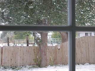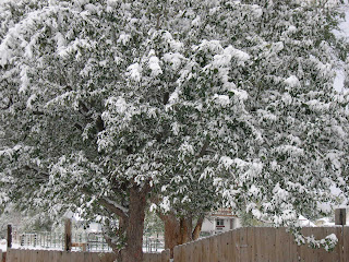 I took these pictures of the snow on our apple tree Sunday - the leaves were still