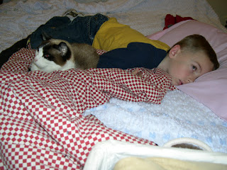 That's too bad, Megan. I was distracted last night, but I was going to look at him. Maybe being sick makes him friendly, at least at first, because he's been really friendly towards me, ever since his visit. Hope you feel better soon, Aiden!