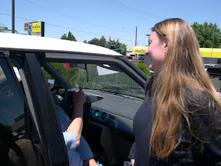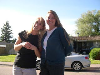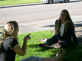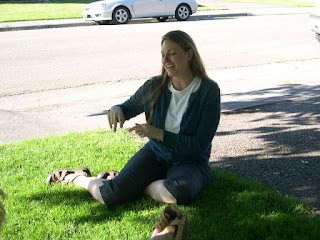 I just have to post about Tamathy visiting us for the past few days (she was here from Wednesday afternoon to Saturday afternoon)! This will probably take several posts to cover. I am so excited that my niece took the Greyhound bus from Eugene, Oregon, at a time when most of her children were in sailing school, to come out here to Idaho. Here she is, above, greeting me when we first arrived at the bus station to pick her up. Above that are pictures of our visit with Danny and Melinda and Ben and Linda Thursday night. We talked and ate clam dip and gummy worms. Tamathy told so many hilarious stories, we laughed the whole time. We were outside most of the time, so the kids were able to play, and Leto enjoyed sitting in the shade of the big maple tree.
