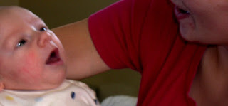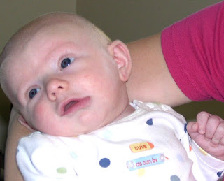Such cute pictures! I love the last one of Hunter (he's finally giving a little smile), and the ones of Tristan's eyes. His eyes look so happy! Oh, and the one of Hunter's bum is soooo funny, because it's all red and covered in lines from his diaper! Hahaha. Just so everyone knows, he has a much cuter bum than that picture shows. :) Thanks for putting on some more pictures!