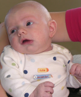 Hunter has a grandpa bum! Ha! I guess it's to match the old man face that Mel says he has. He looks so cute and I can already see that more grown up look in him. I like the pictures of Tristy loos eyes. I wonder what part f the family he got them from? I can't think of anyone in any of our family or Danny's family that have eyes shaped like Tristans.