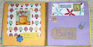 Hi Poodle! I put a few pictures of this book on my blog too, but just a couple so I'm really glad you put more pictures on here. It's the cutest little baby book and I love it. Thank you! You're a good Grandma. :) OH, and for your Hunter Update, he is asleep in my arms again (I better get strong muscles from carrying him all over!), and he is wearing a snuggly little striped green and blue outfit. Actually, he is no longer asleep, he's waking up and his eyes are still rolling around. He looks drunk! Hahaha. Awwww, now he's smiling! Wish I could get a better picture of it...