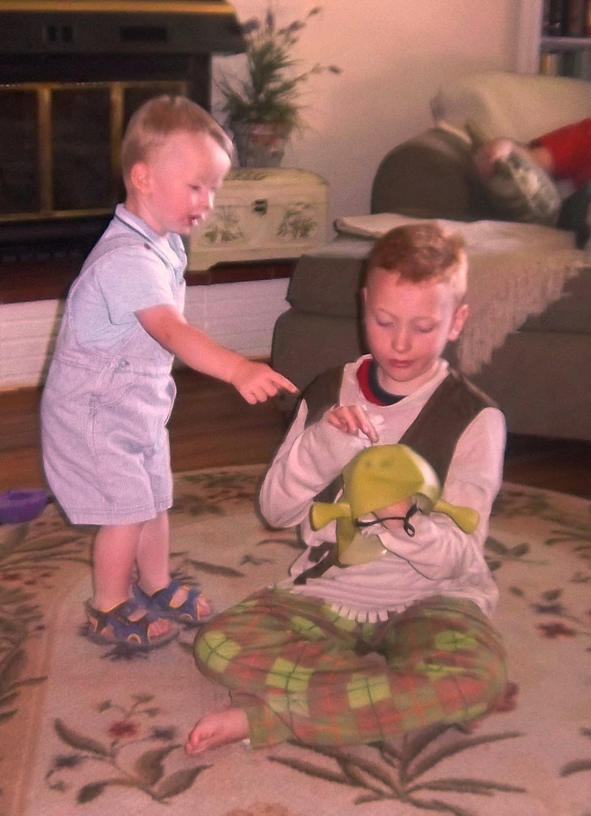 Alex got a Shrek costume from Grandma and Grandpa Campbell