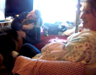 Leto is seriously the PRETTIEST dog I've ever seen! He is so classic looking, especially with his bandana. Winston was by far the cutest dog I've ever seen, so between the two of us, we gots the best looking dogs! Well, except that we don't have Winston anymore. :/ Tut is really cute too. So funny that he is watching tv. And it is neat to see Kattie working there and Justy and the kids eating there too. makes me want to come over!
