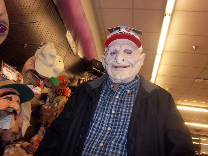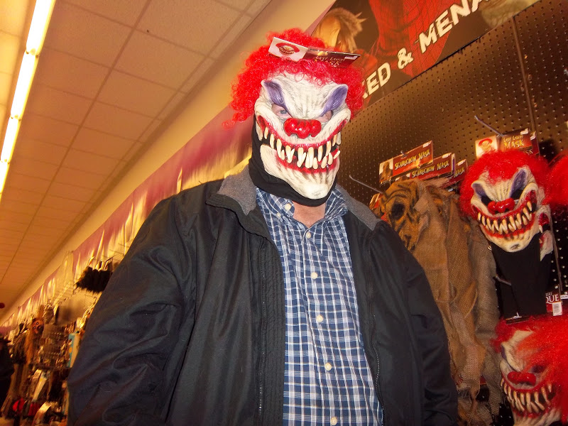 The second and third pics are us at a mask store. And the scary clown.