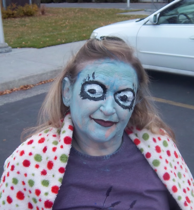 I'm so glad you posted again! Love the pictures. Your masks and scary clown faces are scary! Especially your blue face and drawn on eyes.