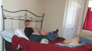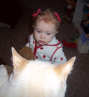 Oops! I meant Ben and Kattie! I always get that mixed up! And Emme and Irelyn are always hugging each other sweetly at our house, being cute...but that's possibly because there's a lot to play with that's new to them here. And, of course, watch and eat and so on. We aim to please!