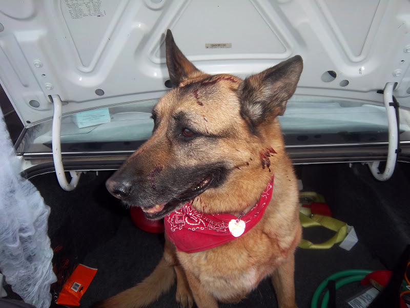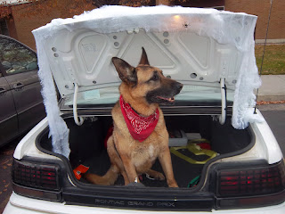 Sorry, but my blog won't let me put captions or additional text on, and it erased what I'd written. Oh, well. We went to the trunk or treat, and Leto sat in our trunk.