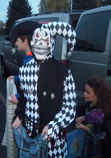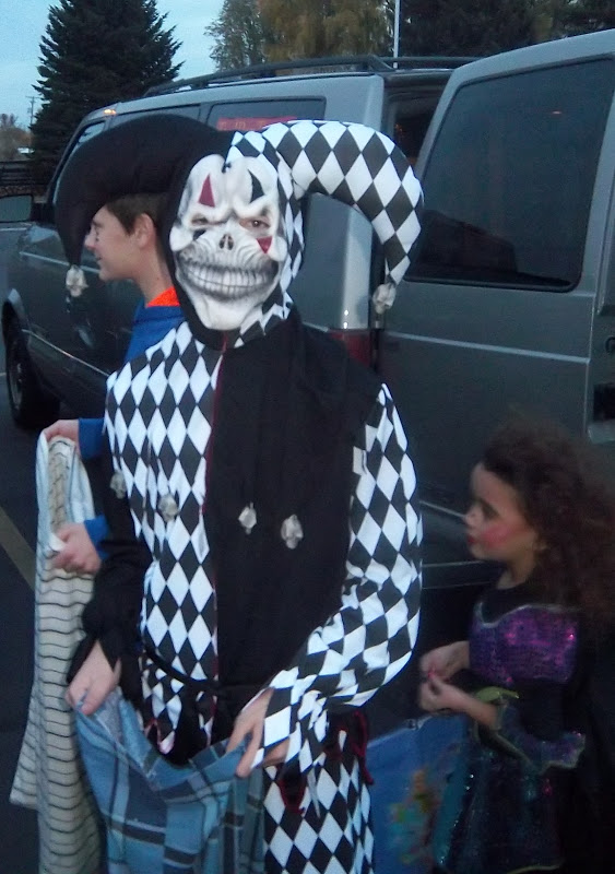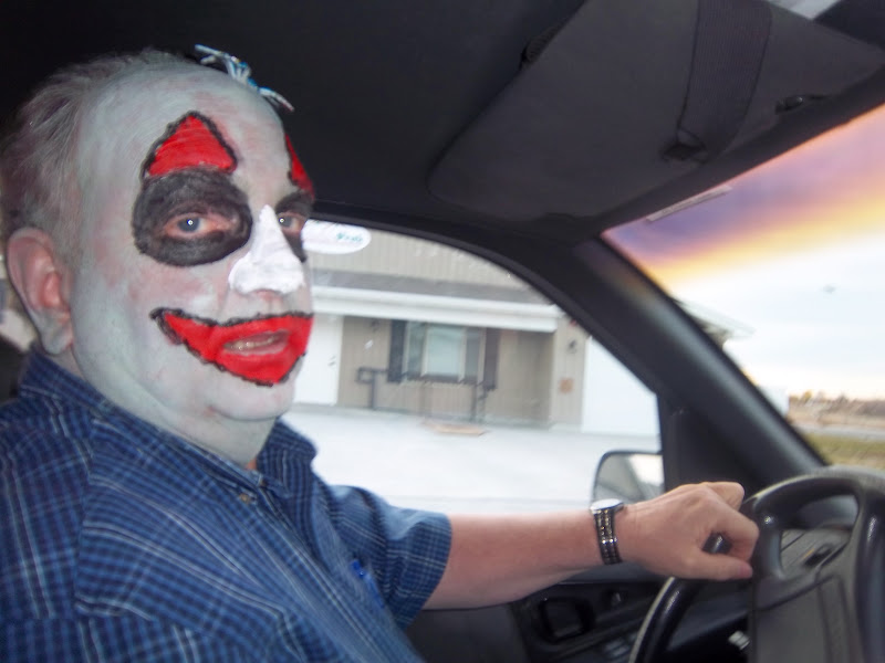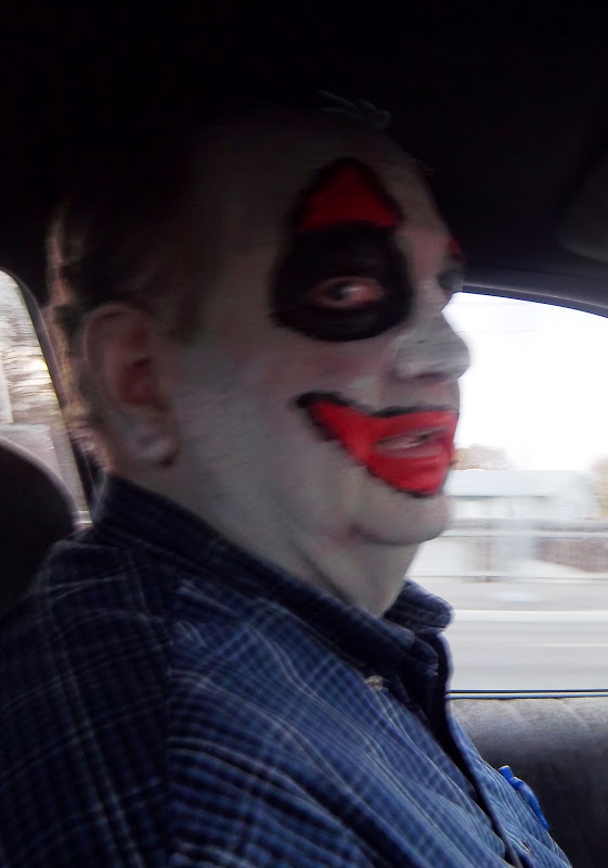 Sorry, but my blog won't let me put captions or additional text on, and it erased what I'd written. Oh, well. We went to the trunk or treat, and Leto sat in our trunk. The second and third pics are us at a mask store. And the scary clown.