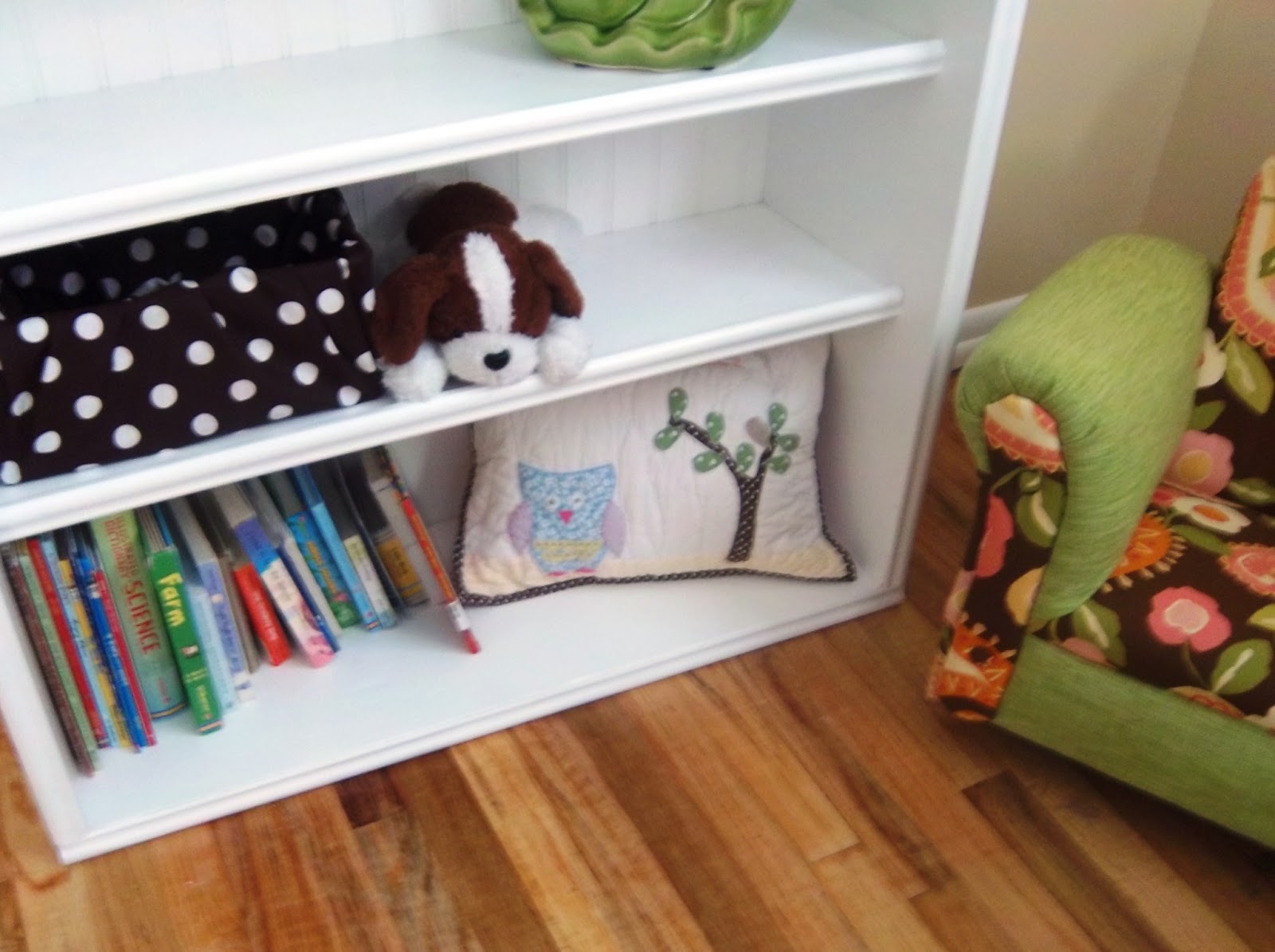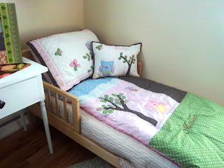 Her room looks sooo cute! Mel did such a great job, especially on the little chair. Now she can re-do ALL the chairs in the family! Mwahaha....