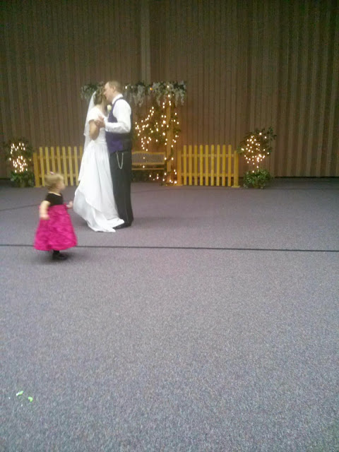 Tara's bridesmaid caught her bouquet and Phillip got her garter. I didn't see that part, but I don't think their was much competition for either one! I think a kid gave Phillip the garter, and kids played with the bouquet till there were rose petals everywhere!